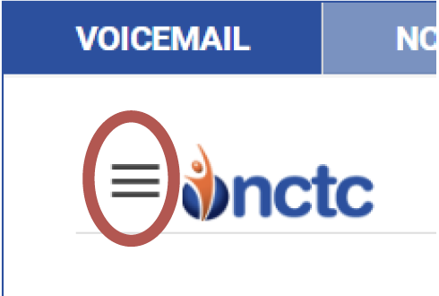 Click on the Menu Icon circled in red and select 1 of 4 options that you wish to manage in your Voicemail service.