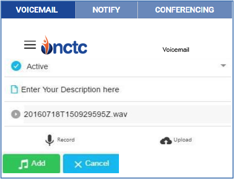Choose Upload to retrieve a file from your computer to use as your greeting. Once you have finished recording or adding your new greeting click on the Add button.